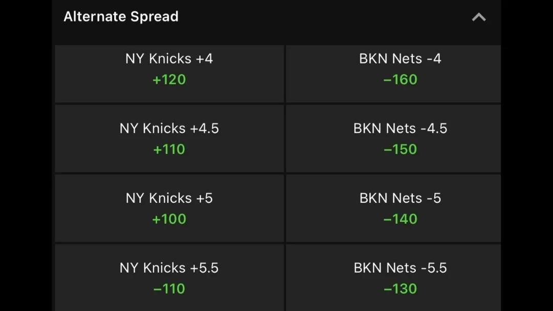 You can see in the photo how the odds change based on what spread number you want for either team.